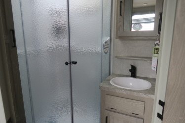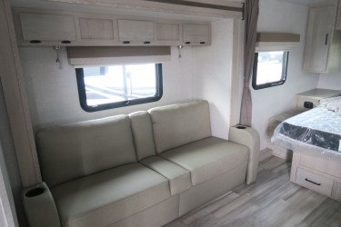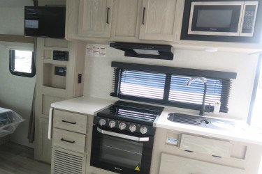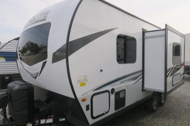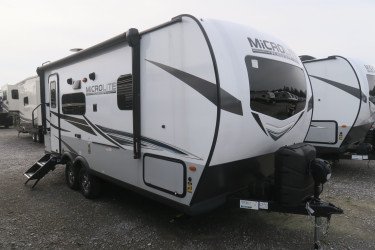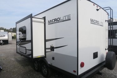 The RV for sale is a New 2022 Flagstaff Micro Lite Travel Trailer by Forest River RV that and has a slide.