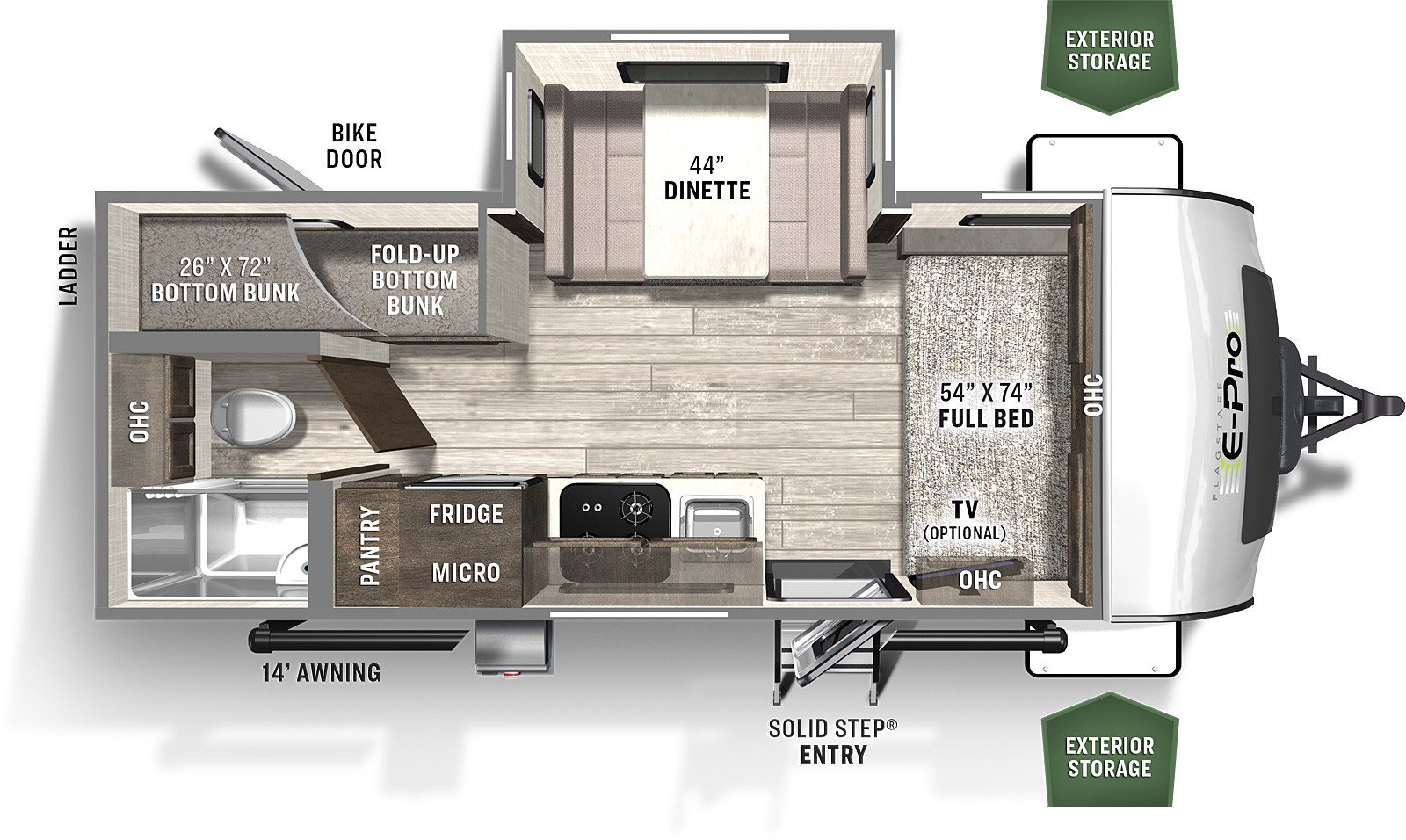 This Flagstaff E-pro Travel Trailer is 21ft 0in long, weighs 3509 (dry), has a "20bhs" floorplan, is in great condition and is available to you at your family RV dealer Ponchatoula in Ponchatoula, LA.