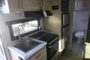 The RV for sale is a New 2021 Flagstaff E-pro Travel Trailer by Forest River RV that and has a slide.