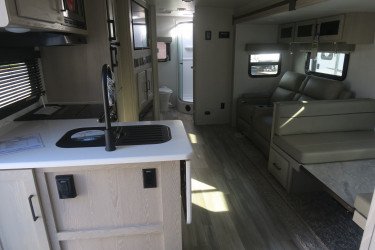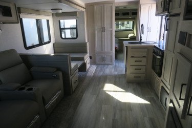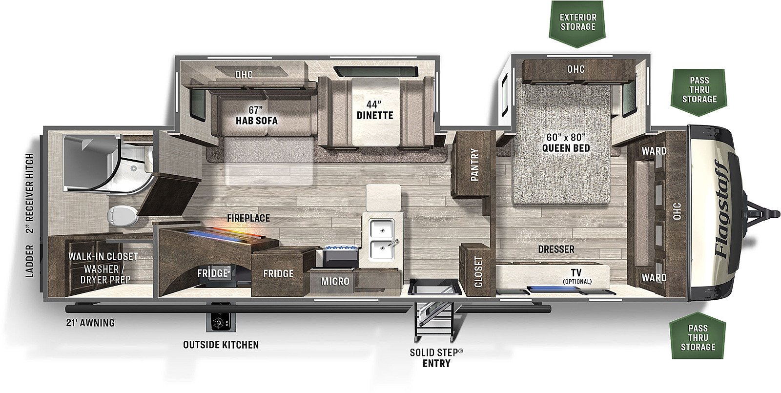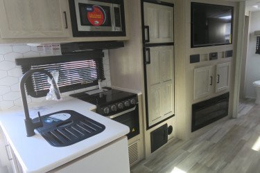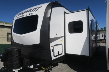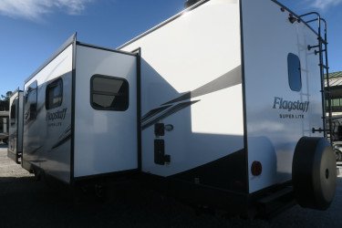 The RV for sale is a New 2021 Flagstaff Super Lite Travel Trailer by Forest River RV that and has 2 spacious slides.