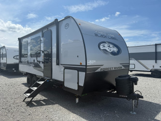 The RV for sale is a New 2021 Flagstaff Super Lite Travel Trailer by Forest River RV that and has a slide.