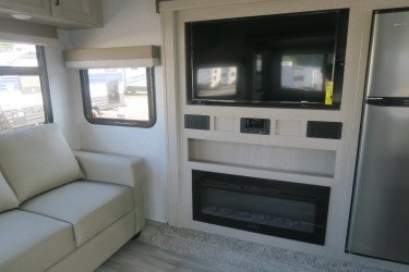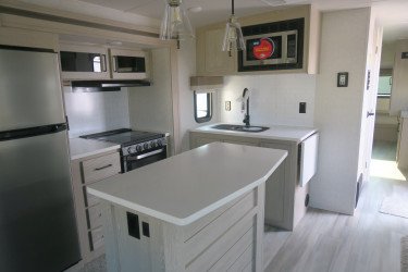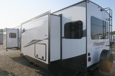 The RV for sale is a New 2022 Flagstaff Super Lite Travel Trailer by Forest River RV that and has a slide.