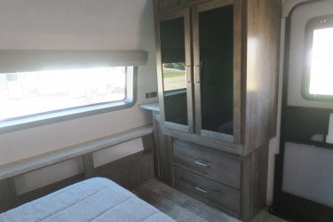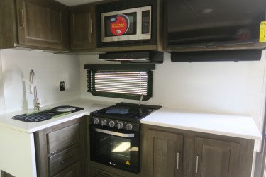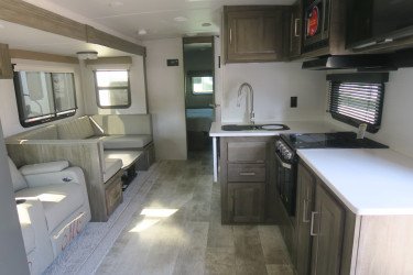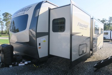 The RV for sale is a New 2022 Flagstaff Super Lite Travel Trailer by Forest River RV that and has a slide.