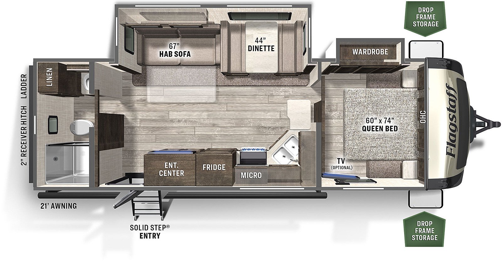 The RV for sale is a New 2022 Flagstaff Super Lite Travel Trailer by Forest River RV that and has a slide.