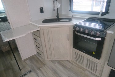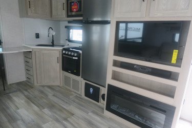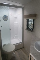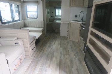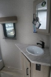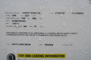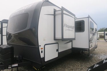 The RV for sale is a New 2023 Flagstaff Super Lite Travel Trailer by Forest River RV that and has a slide.