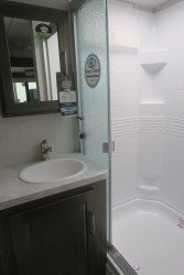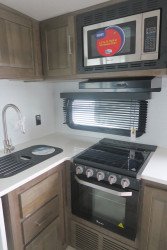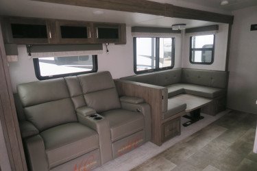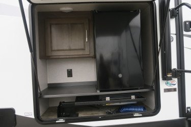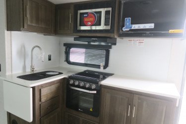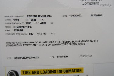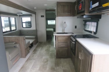 The RV for sale is a New 2023 Flagstaff Super Lite Travel Trailer by Forest River RV that and has a slide.