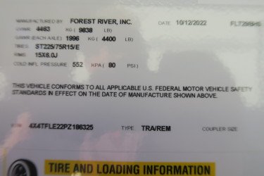 The RV for sale is a New 2023 Flagstaff Super Lite Travel Trailer by Forest River RV that and has a slide.