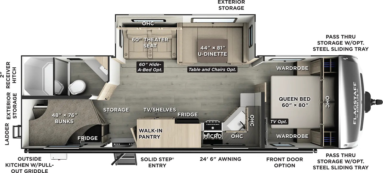 This Flagstaff Super Lite Travel Trailer weighs 7000 (dry), is in great condition is 32ft 10in long, has a "27dbh" floorplan, and is available to you at your family RV dealer Ponchatoula in Ponchatoula, LA.