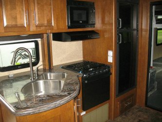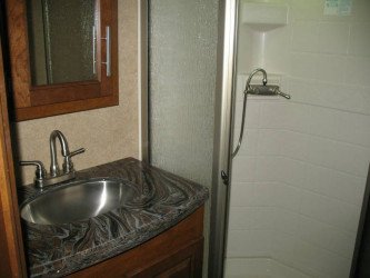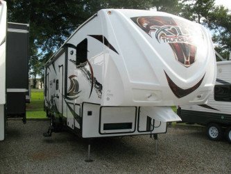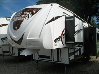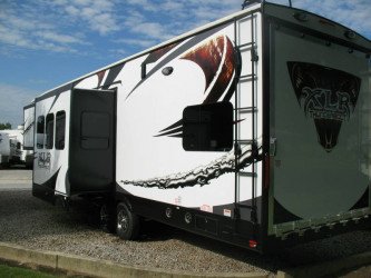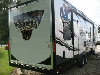 The RV for sale is a New 3914 Forest River Xlr Travel Trailer by Forest River RV that is room enough for 8 RV-ers to sleep, is equipped with a tough fiberglass construction type, and has 2 spacious slides.