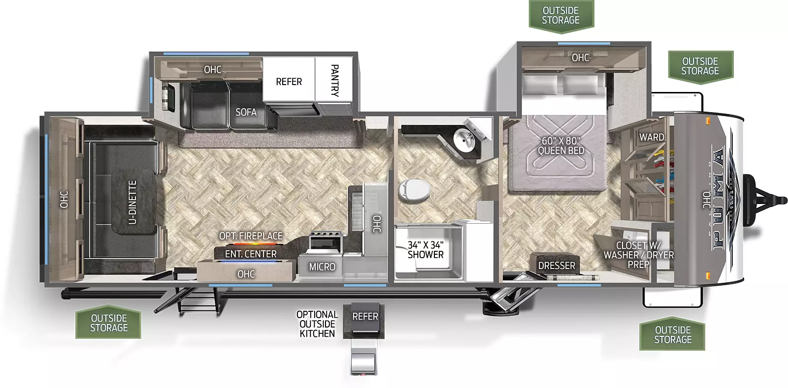 This Puma 29rdbs Travel Trailer weighs 7465 (dry), is in great condition has a "29rdbs" floorplan, is 34ft 10in long, and is available to you at your family RV dealer Ponchatoula in Ponchatoula, LA.