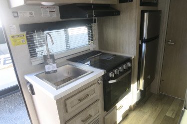 The RV for sale is a New 2021 Rockwood Geo Pro Travel Trailer by Forest River RV that and has a slide.