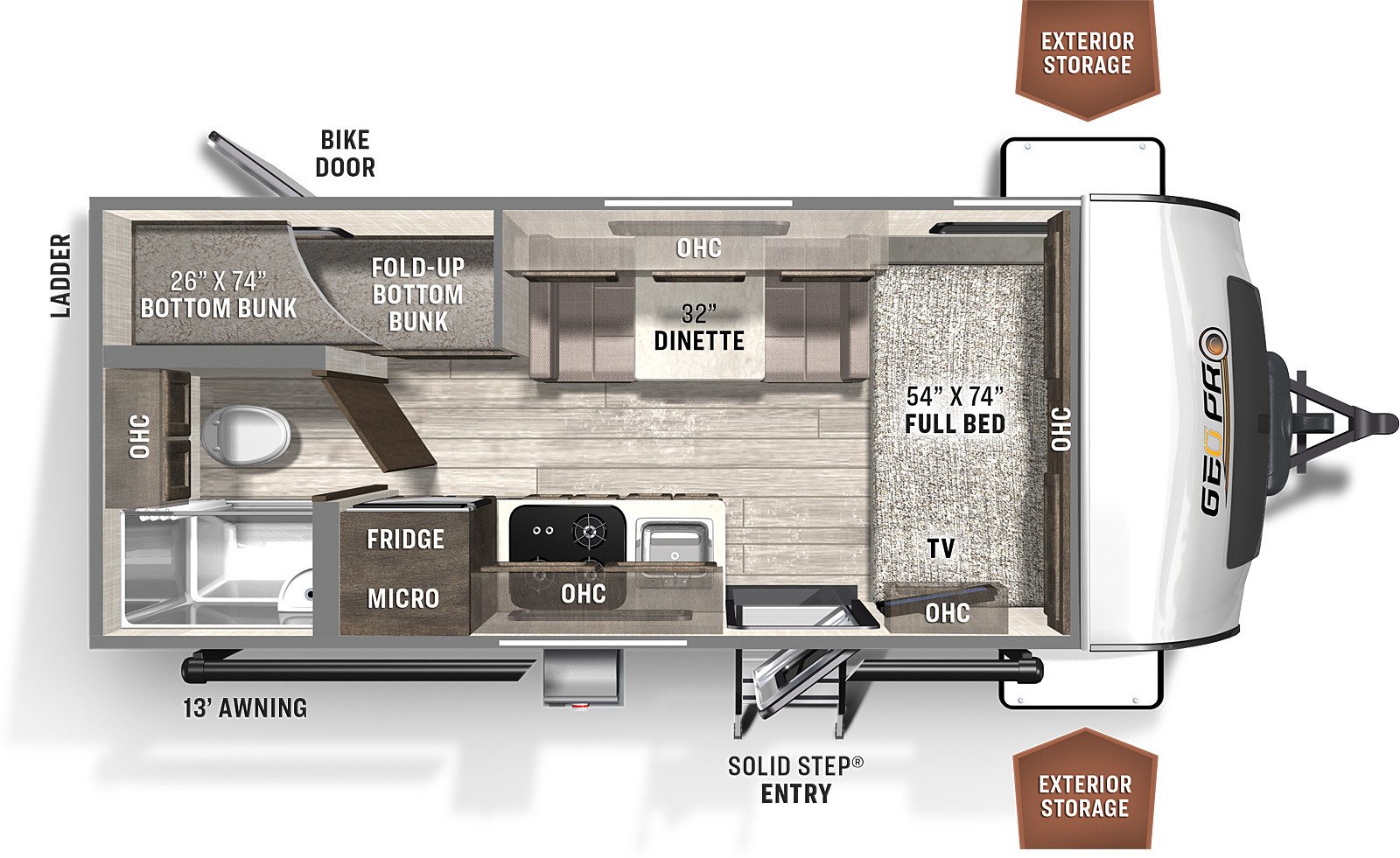 This Rockwood Geo Pro Travel Trailer has a "19bh" floorplan, weighs 3171 (dry), is in great condition is 20ft 8in long, and is available to you at your family RV dealer Holden in Holden, LA.