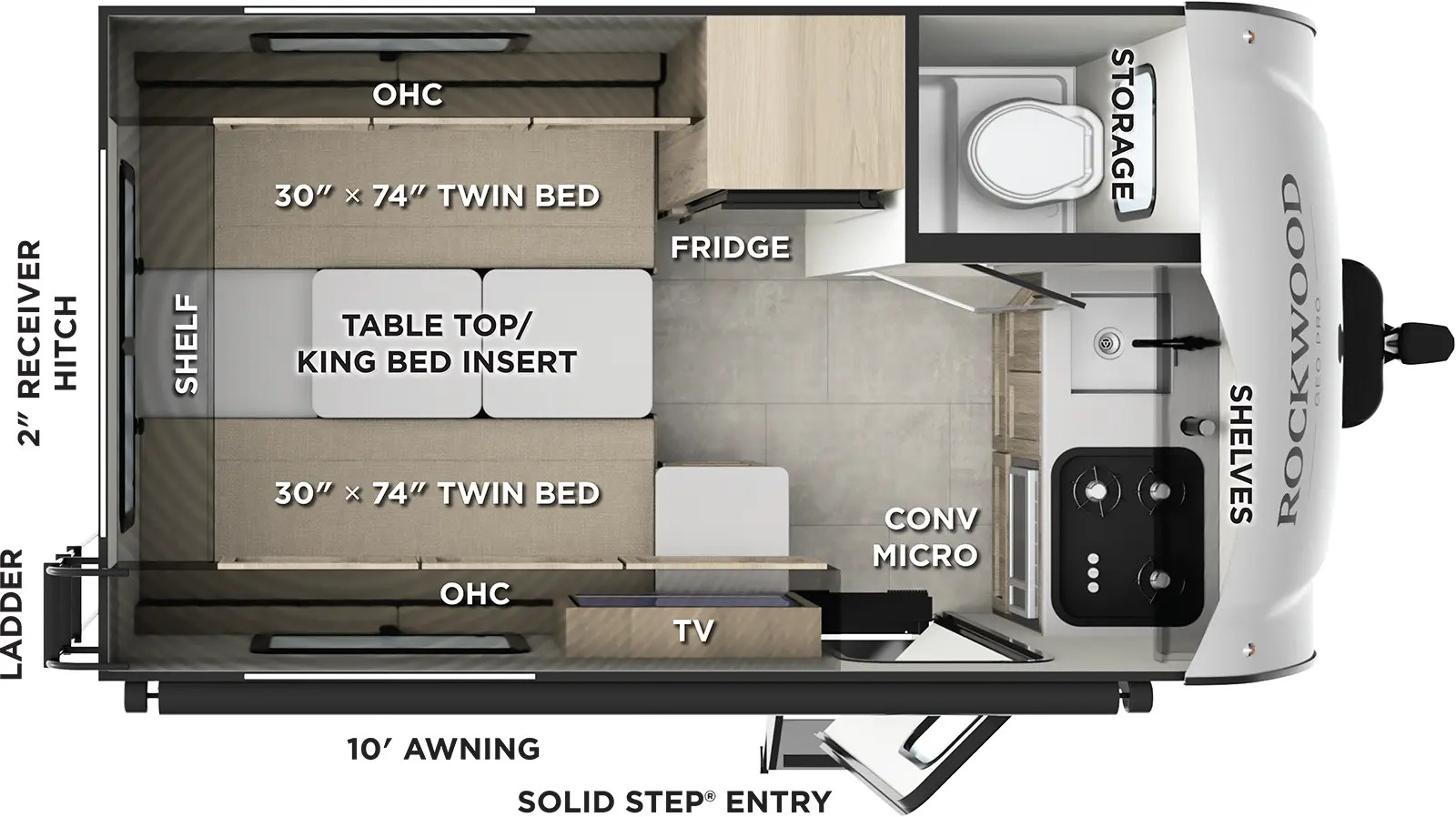 This Rockwood Geo Pro Travel Trailer is 15ft 8in long, has a "15tb" floorplan, weighs 2795 (dry), is in great condition and is available to you at your family RV dealer Holden in Holden, LA.