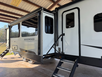 This Rockwood Signature Travel Trailer has a "8421db" floorplan, is in great condition is 41ft 10in long, weighs 11200 (dry), and is available to you at your family RV dealer Holden in Holden, LA.
