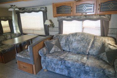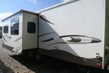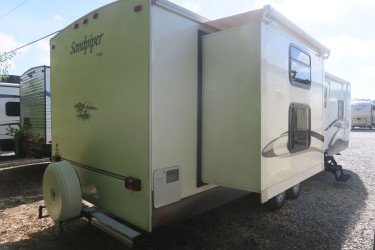 The RV for sale is a Used 2006 Sandpiper Standard Travel Trailer by Forest River RV that and has a slide.