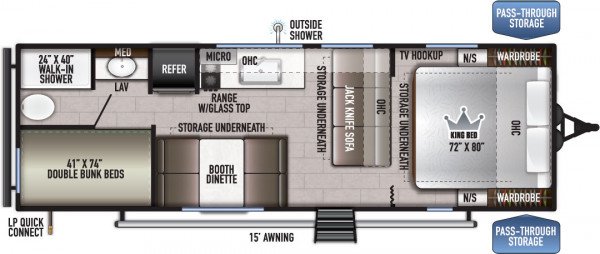The design team at Heartland Travel Trailers has engineered their trailers around the quick-unhitch process so that you can spend more time with the family on day trips and less time leveling out your trailer. The smaller-size trailers, thanks to their ultralight designs, can be towed by an SUV, while the medium-large trailers can be hauled by a standard truck.