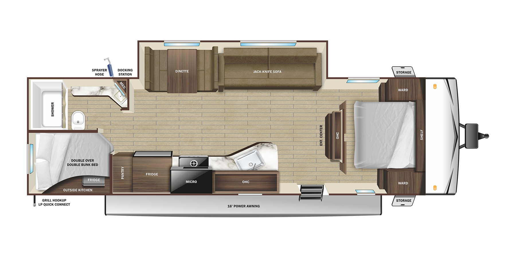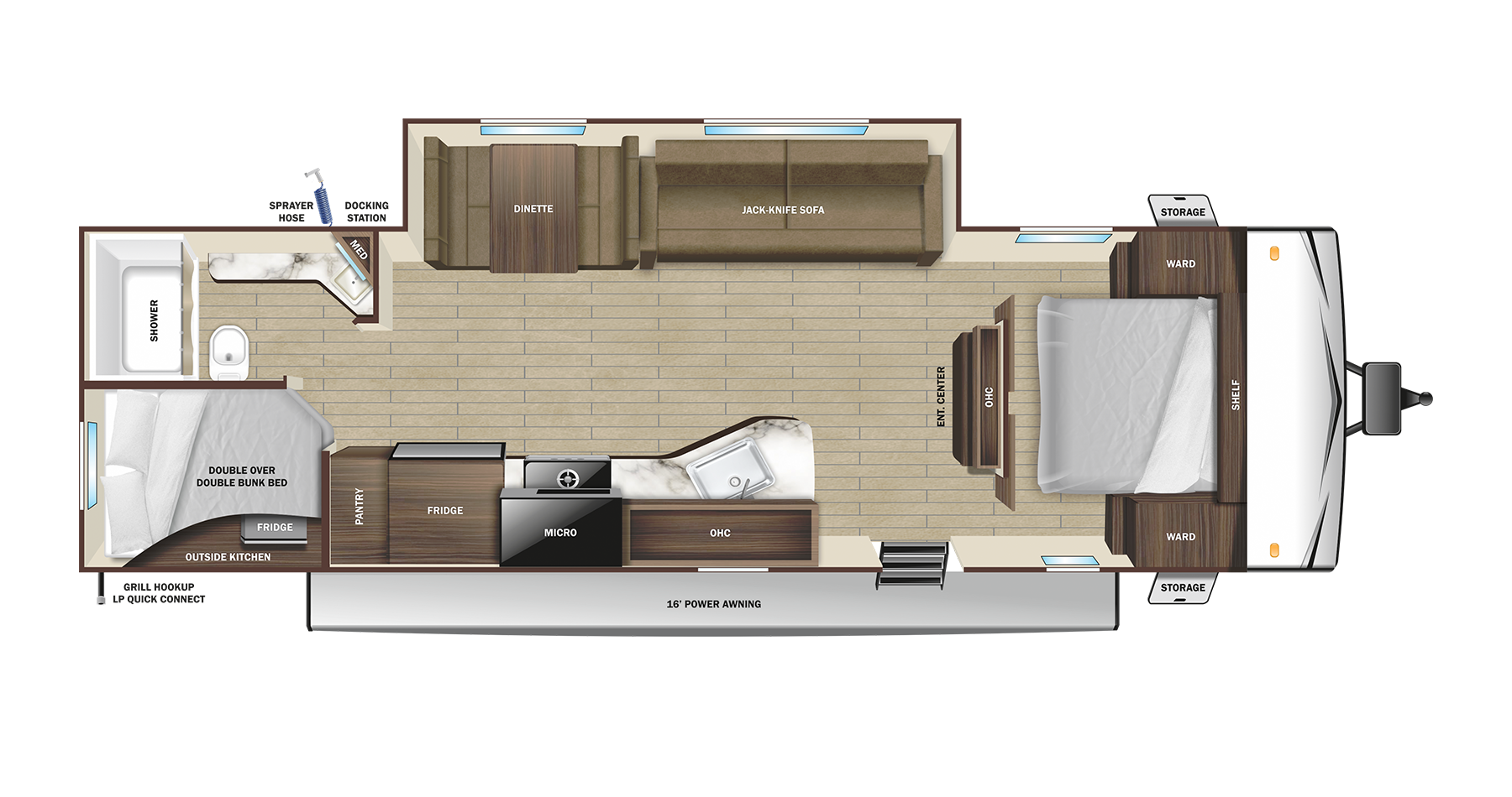 This Open Range 26bhs Travel Trailer is in great condition is 30ft 8in long, has a "26bhs" floorplan, weighs 6050 (dry), and is available to you at your family RV dealer Ponchatoula in Ponchatoula, LA.