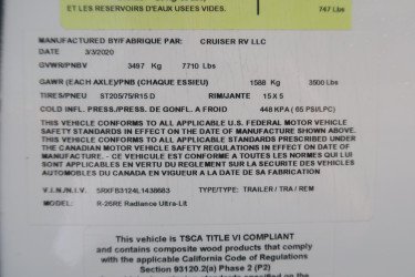 The RV for sale is a Used 2020 Cruiser Radiance Travel Trailer by Keystone RV that and has a slide.