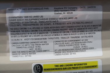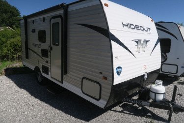 The RV for sale is a Used 2019 Hideout 175lhs Travel Trailer by Keystone RV that and has a slide.