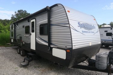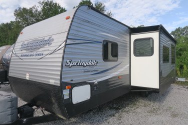 The RV for sale is a Used 2018 Springdale Summerland Travel Trailer by Keystone RV that and has a slide.