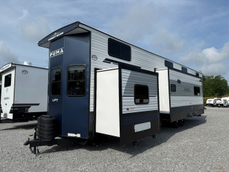 This Puma Destination Travel Trailer weighs 12965 (dry), is in great condition is 42ft 10in long, has a "420lft" floorplan, and is available to you at your family RV dealer Ponchatoula in Ponchatoula, LA.