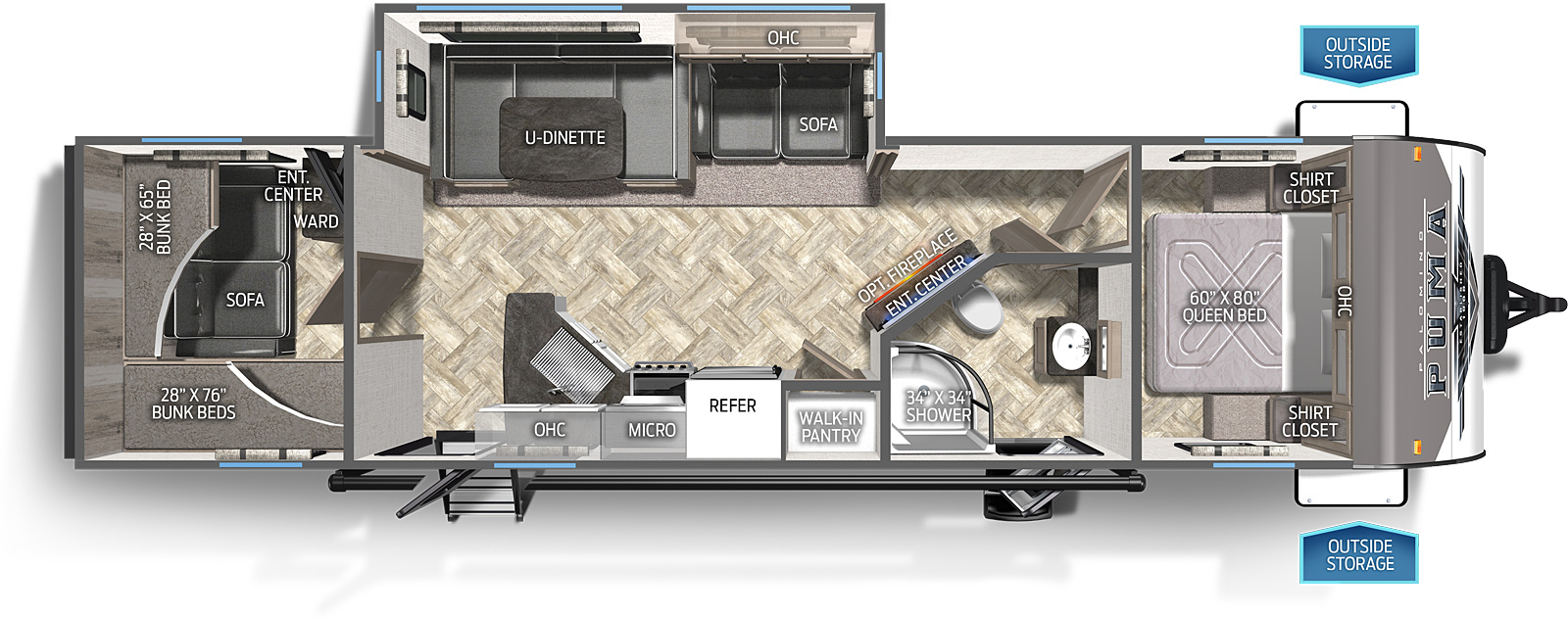 This Puma 28bhss Travel Trailer is in great condition weighs 7475 (dry), is 36ft 10in long, has a "28bhss" floorplan, and is available to you at your family RV dealer Ponchatoula in Ponchatoula, LA.