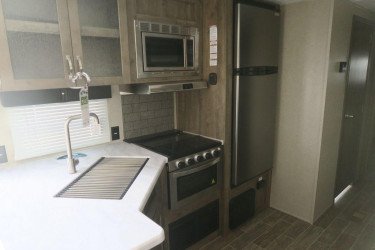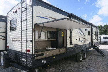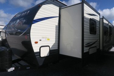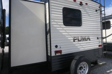 The RV for sale is a New 2020 Puma Standard Travel Trailer by Palomino RV that and has a slide.