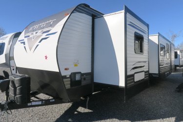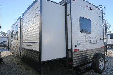 The RV for sale is a New 2022 Puma Standard Travel Trailer by Palomino RV that and has a slide.