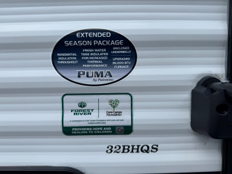 This Puma 32bhqs Travel Trailer is 38ft 9in long, has a "32bhqs" floorplan, is in great condition weighs 9013 (dry), and is available to you at your family RV dealer Ponchatoula in Ponchatoula, LA.