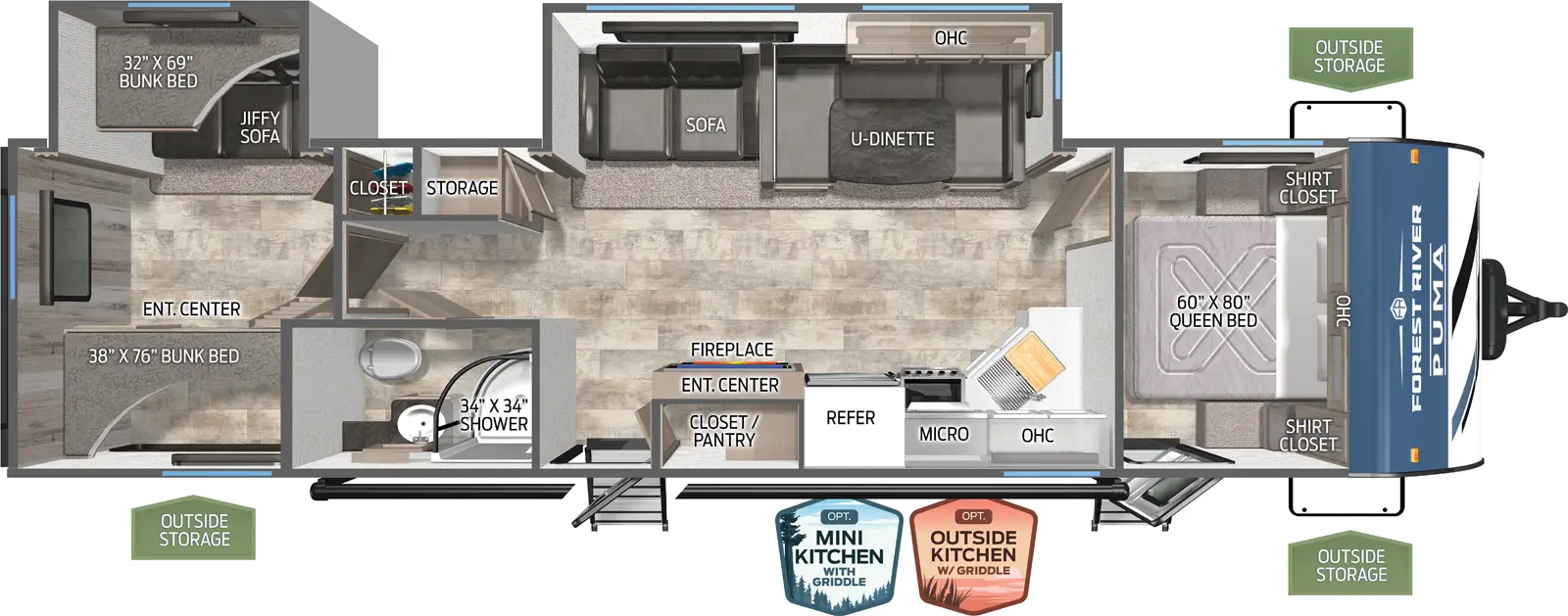 This Puma 31qbbh Travel Trailer has a "31qbbh" floorplan, is in great condition is 37ft 10in long, weighs 8193 (dry), and is available to you at your family RV dealer Ponchatoula in Ponchatoula, LA.