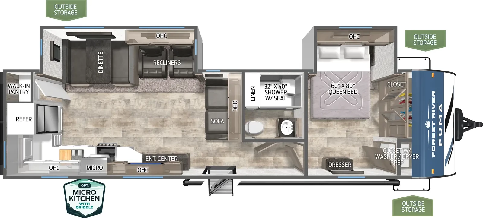 This Puma 30rkqs Travel Trailer is 36ft 1in long, is in great condition weighs 7915 (dry), has a "30rkqs" floorplan, and is available to you at your family RV dealer Ponchatoula in Ponchatoula, LA.