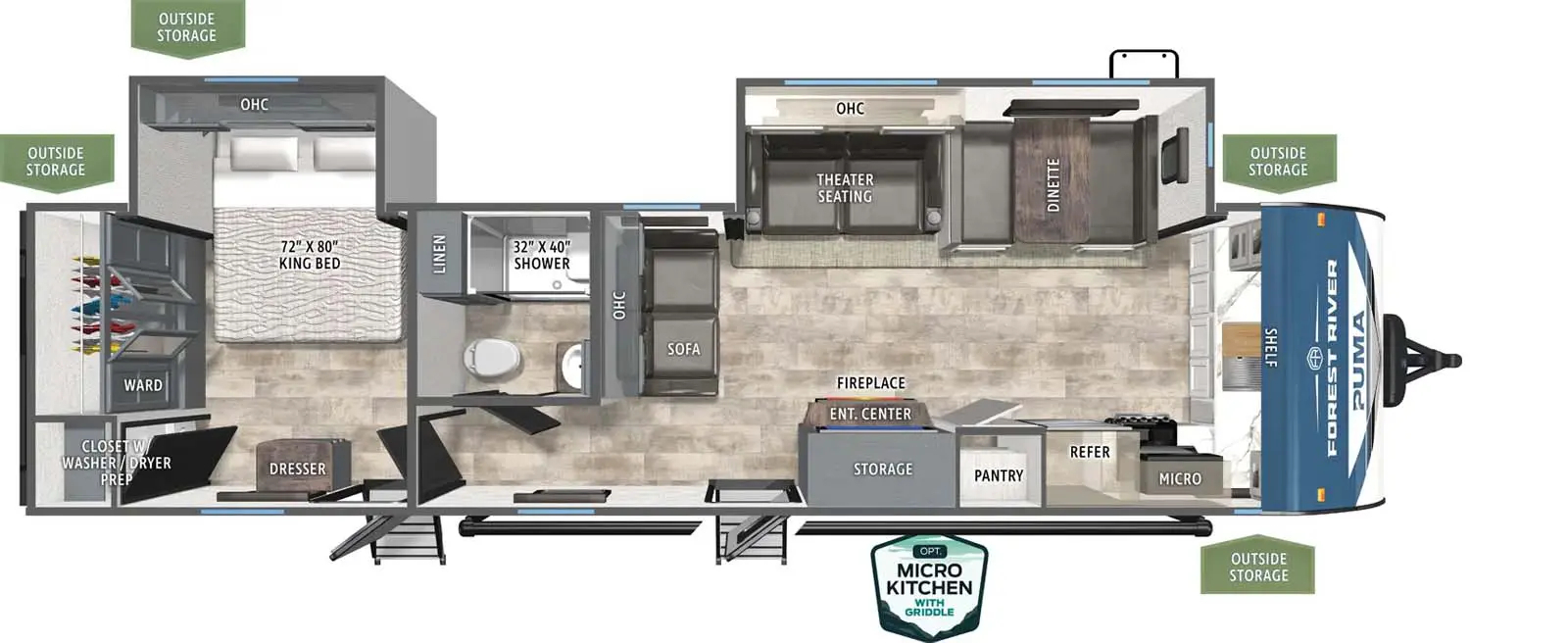 This Puma 31fkrk Travel Trailer is in great condition is 37ft 11in long, weighs 8295 (dry), has a "31fkrk" floorplan, and is available to you at your family RV dealer Ponchatoula in Ponchatoula, LA.