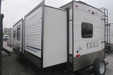The RV for sale is a New 2022 Puma Standard Travel Trailer by Palomino RV that and has a slide.