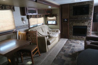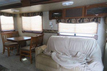 The RV for sale is a Used 2015 Lacrosse Standard Travel Trailer by Primetime RV that and has a slide.